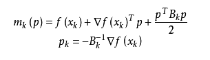 这里Bk是一个对称正定矩阵,于是我们取这个二次模型的最优解作为搜索方向,并且得到新的迭代点: