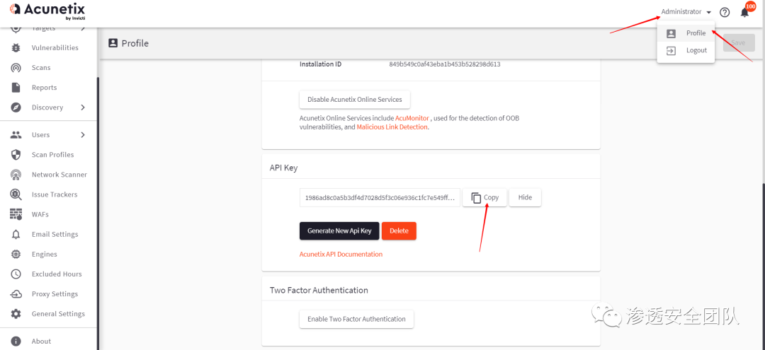 「Administrator」-「Profile」-「API Key」-「Copy」