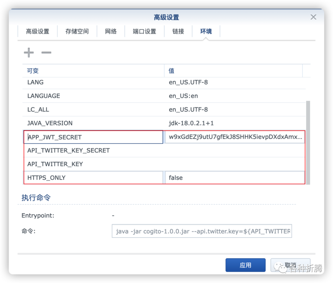 APP_JWT_SECRET:可以用 Bitwarden密码生成器开生成,可以用 256 位(128 个字符长)的字符串;HTTPS_ONLY:如果只是用局域网 IP 访问或者反代后使用 http协议,设为 false,如果反代后使用 https
