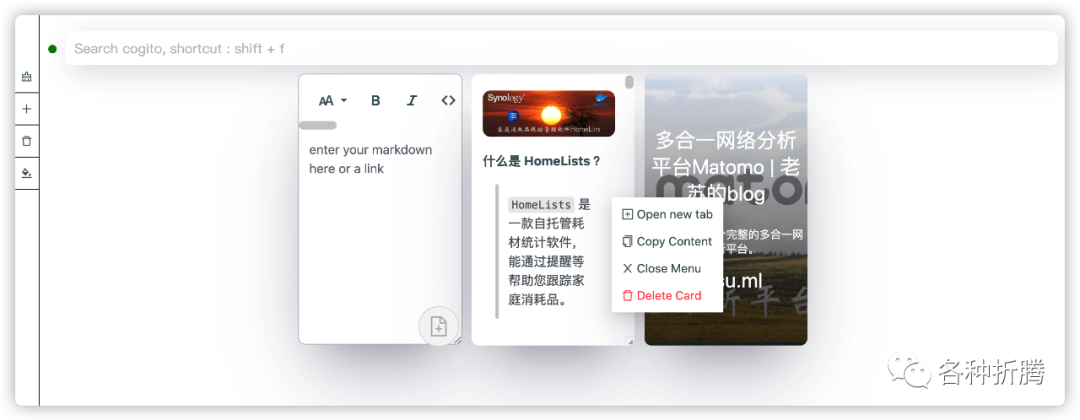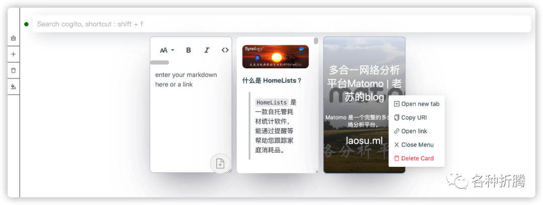 卡片上可以点右键,不同的卡片上右键菜单存在小差异
