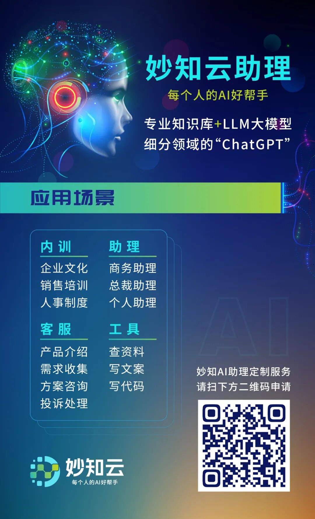 妙知云基于AI技术的云服务平台,不仅可以构建个人和企业的专属知识库,也可以结合细分领域的知识库和ChatGPT推理能力,实现高效、智能化的问答、搜索、客服、助理等应用场景。