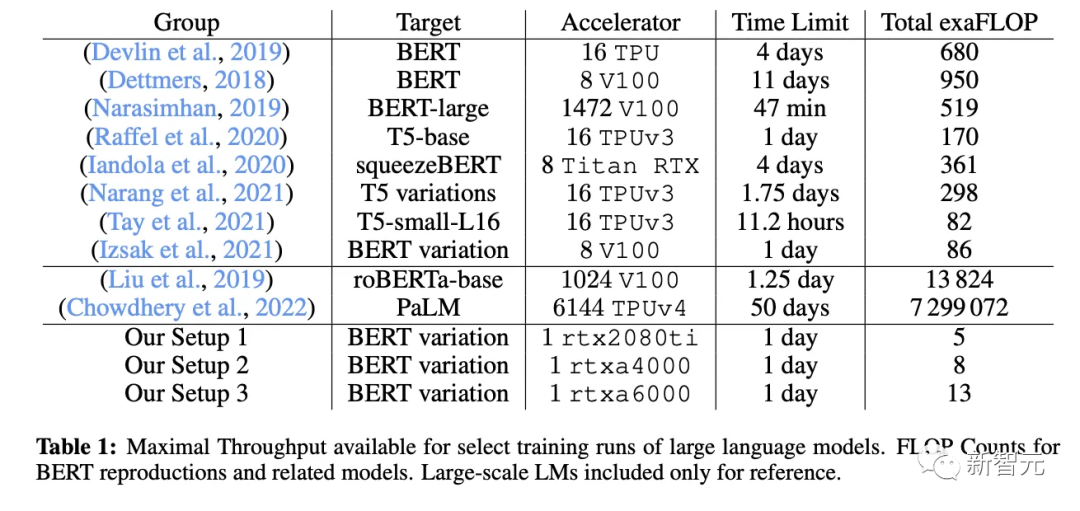 在这篇论文中,研究人员使用单个GPU用了24个小时训练了一个遮罩语言模型/编码器风格的语言模型,在单个GPU上进行24小时,相比之下,2018年BERT刚提出来的时候,在16个TPU上训练了四天。