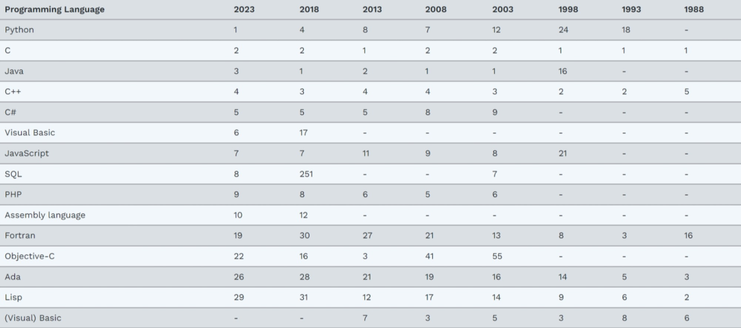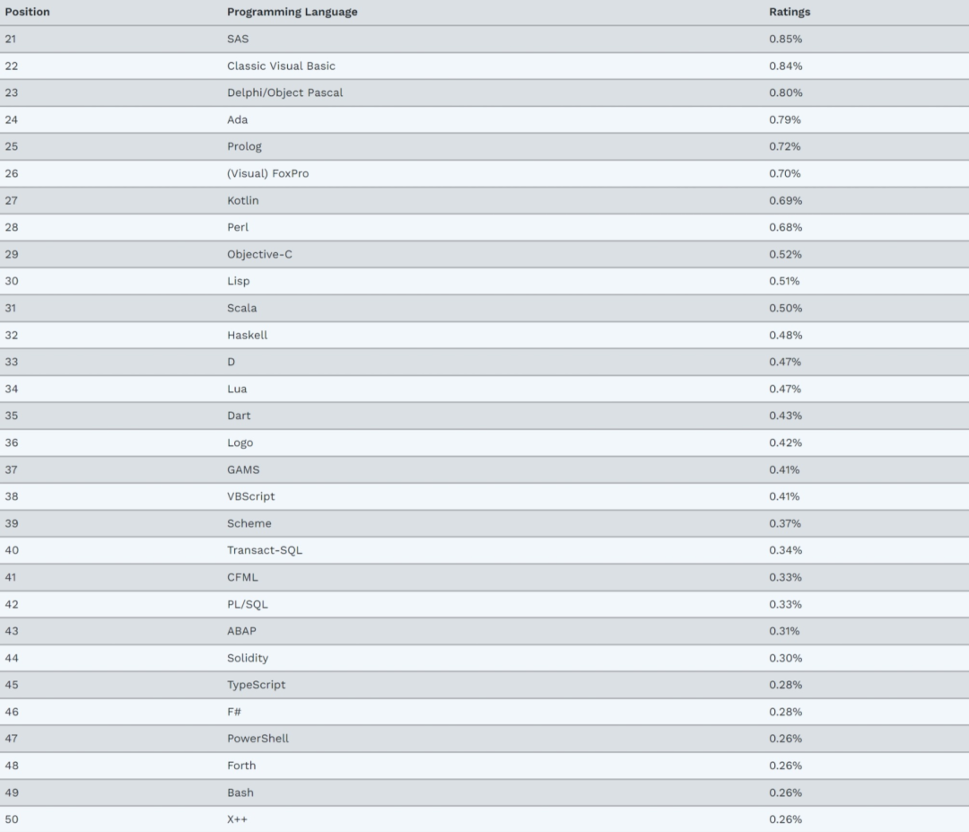 这个排行榜可以用来考察你的编程技能是否与时俱进,也可以在开发新系统时作为一个语言选择依据。