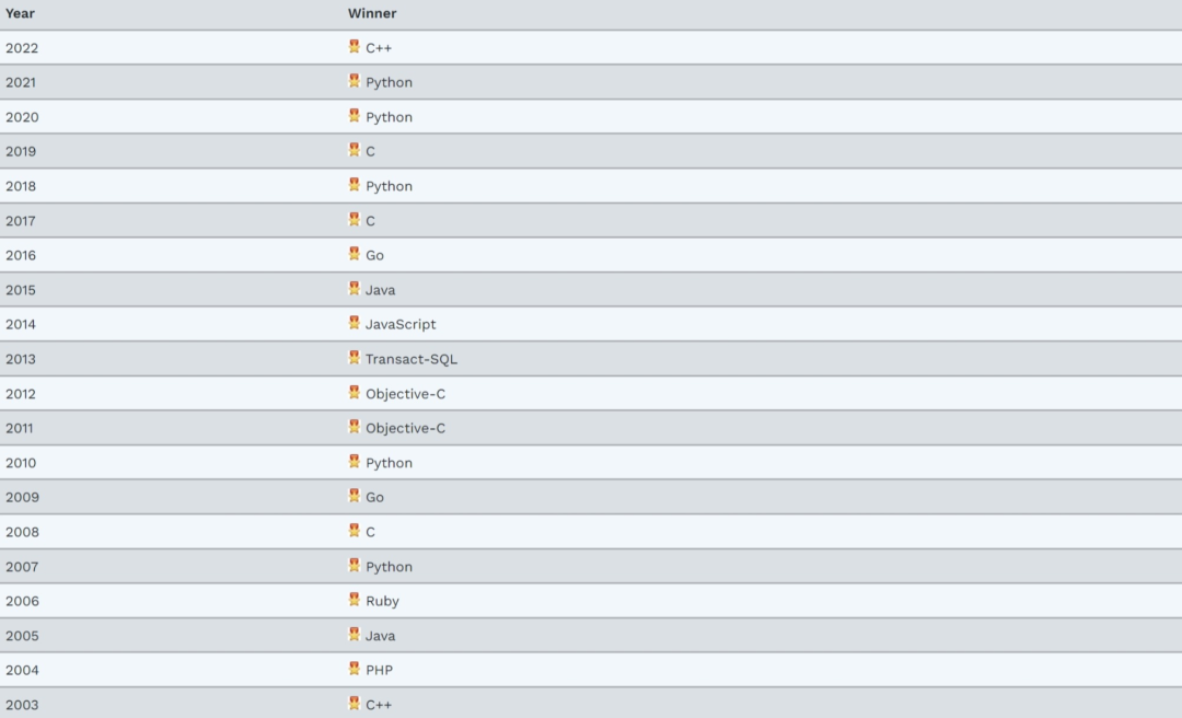 编程语言“名人榜”(2003-2022)
