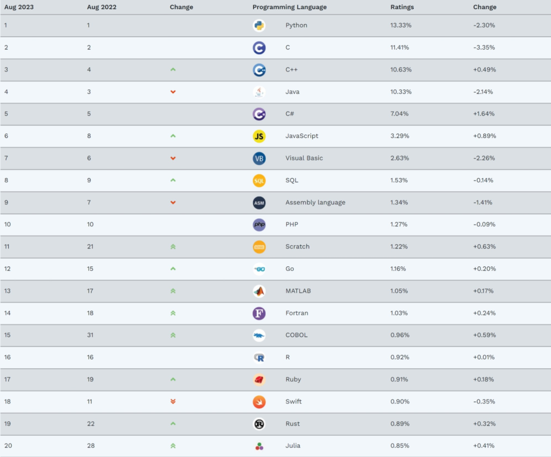 8 月的 TIOBE 编程语言榜单已最新发布了,一起来看看这个月有什么值得关注的新变化吧!