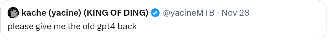 鉴于 ChatGPT 现在的表现,网友开始纷纷怀念以前的 GPT-4 了。