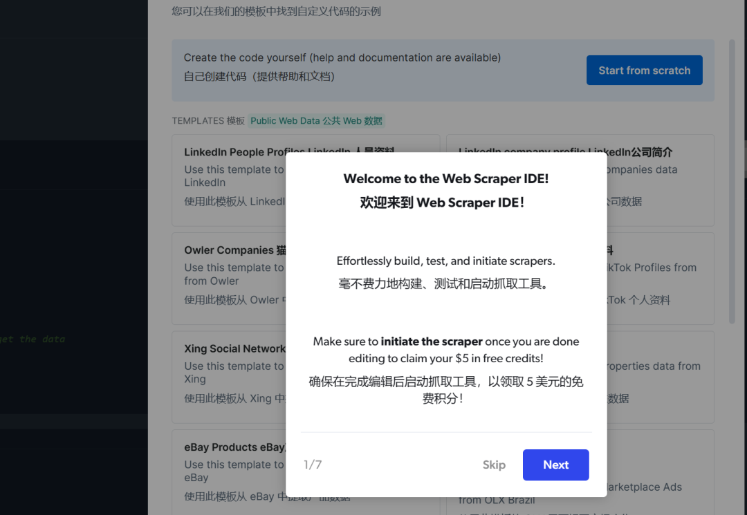 亮数据还提供了 web 端的 IDE 工具,并提供了相关的示例代码,你可以直接使用模板和对应的代码!也可以自己自定义爬虫,根据自己的需求创建代码。