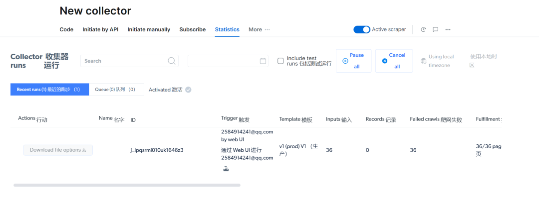 然后提交,等待数据抓取完成。