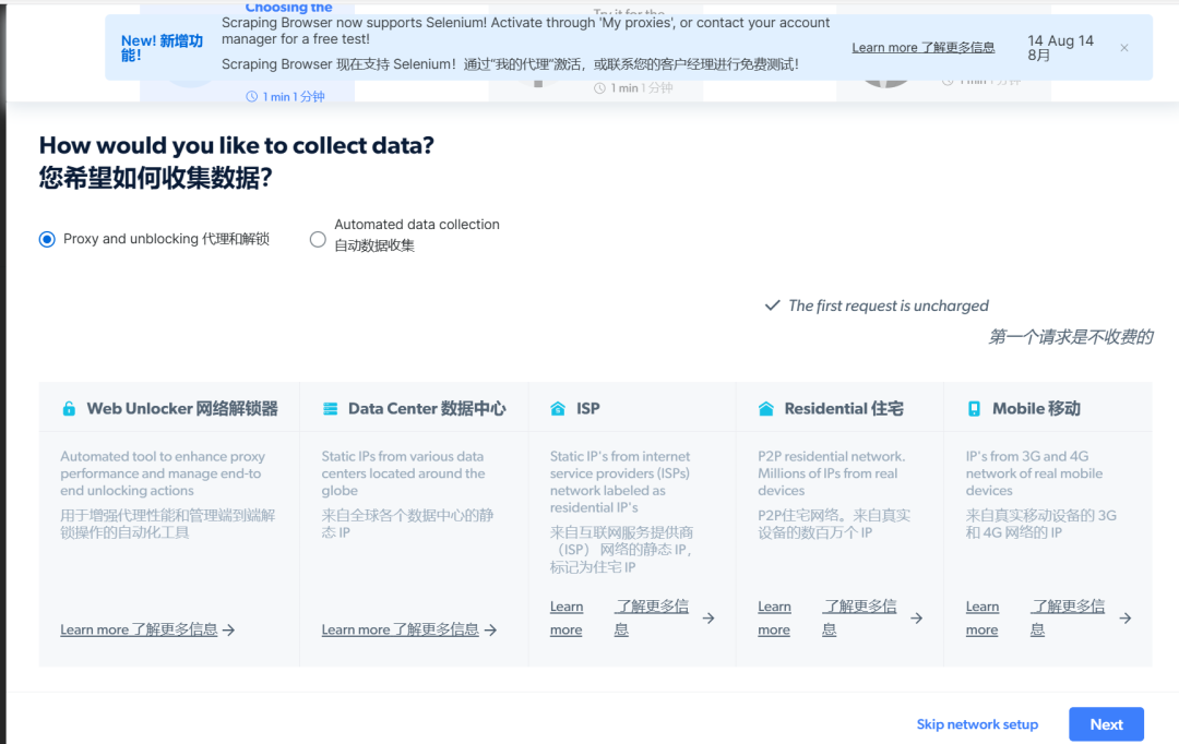无论你是需要大规模收集数据,还是需要突破网站封锁,或者是需要管理你的代理网络,亮数据都能为你提供最优质的服务。选择亮数据,让我们一起解锁全球网络数据的无限可能!