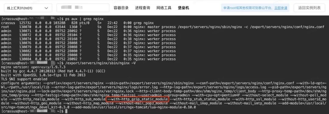查了一下 jdos 自带的 nginx 已经编译了 ngx_http_gzip_static_module,省去了重新编译的麻烦事。