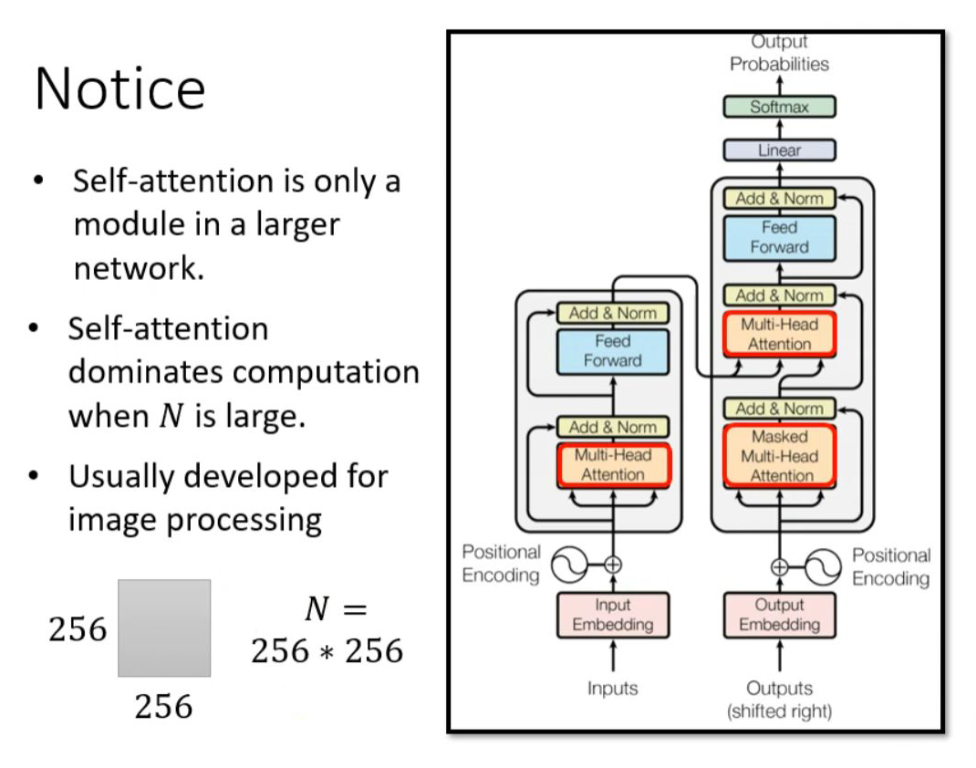 在 2021 年课程的 transformer 视频中,李老师详细介绍了部分 self-attention 内容,但是 self-attention 其实还有各种各样的变化形式: