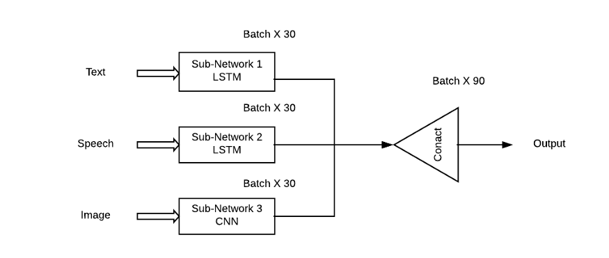 这种方法的问题是,它将给予所有子网络/模式同等的重要性,这在现实情况中是非常不可能的。这里需要采用子网络的加权组合,以便每个输入模态可以对输出预测有一个学习贡献(Theta)。