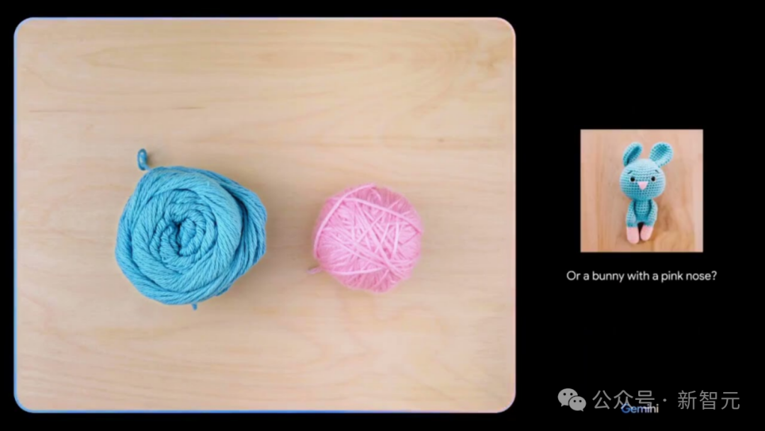 当用户给出两个毛线团并问出能用它们做什么时,Gemini可以识别出图片内容并给出相应的建议。