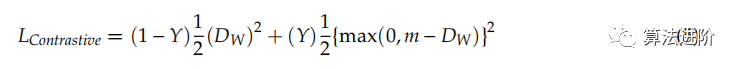 其中,GW(X1) 和 GW(X2) 是新表示的输入样本,DW用于计算损失函数中两个输入之间的距离。用于计算 Siamese 网络模型中损失函数的 LContrastive 是:
