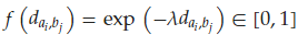 的相似度λ 和缩放因子α,和α是一个证据折扣因子。对于类别相似性,属于同一类别的两个检测太弱,无法提供它们是同一对象的证据。然而,如果两个检测属于不同类别,则将证据分配给它们不是同一对象的命题是合理的。因此,类别相似性的证据由下式给出如果没有共享公共类别假设,则融合大量证据,即