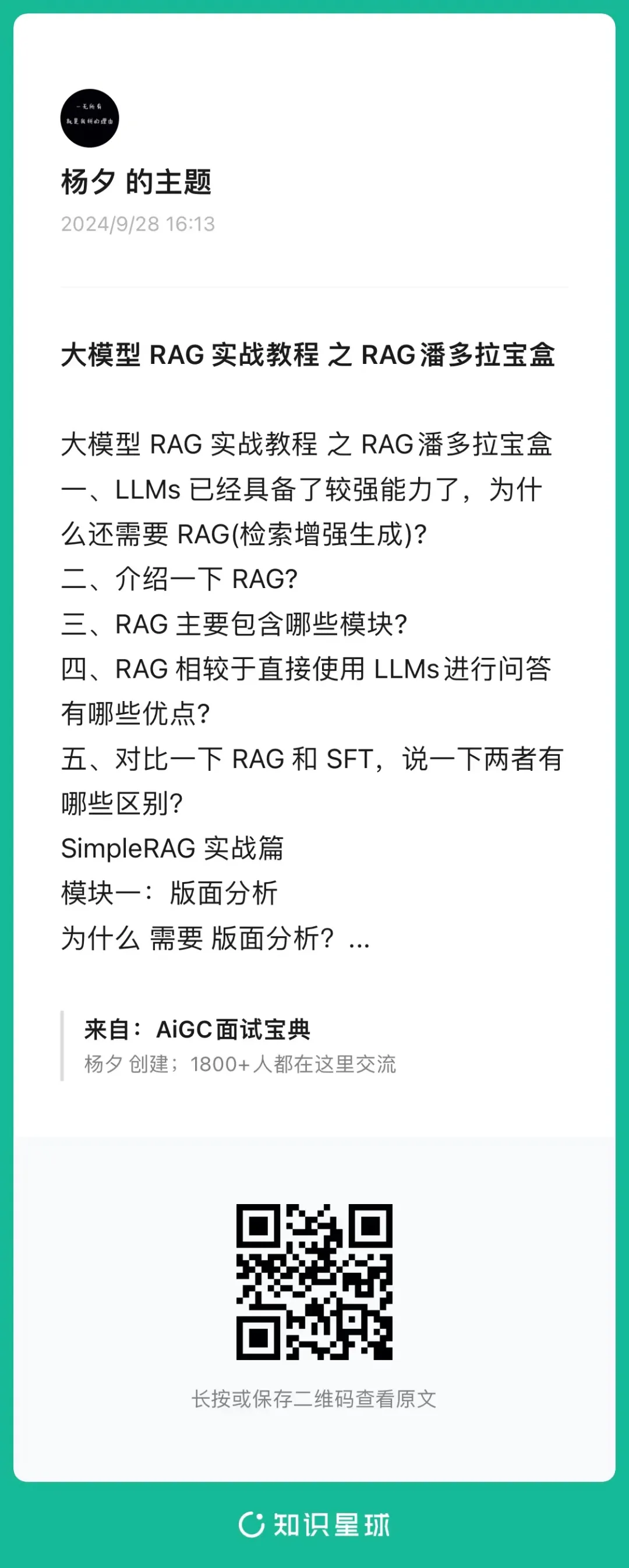 《AIGC面试宝典》星球主要是作者的一些学习成果和资料分享。