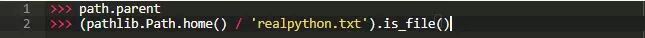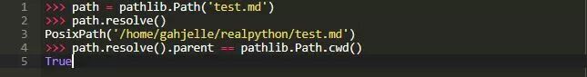 请注意,比较路径时,比较的是它们的表示方式。 在上面的例子中,path.parent不等于pathlib.Path.cwd(),因为path.parent用"."表示。 而pathlib.Path.cwd()由"/home/gahjelle/realpython/"表示。