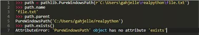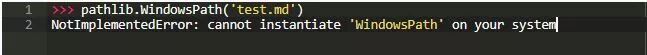 早些时候,我们注意到当我们实例化pathlib.Path时,返回了WindowsPath或PosixPath对象。 对象的种类取决于您使用的操作系统。 该功能使编写跨平台兼容代码变得相当容易。 可以明确地询问WindowsPath或PosixPath,但您只会将代码限制在该系统中,没有任何好处。 这样的具体路径不能用于不同的系统: