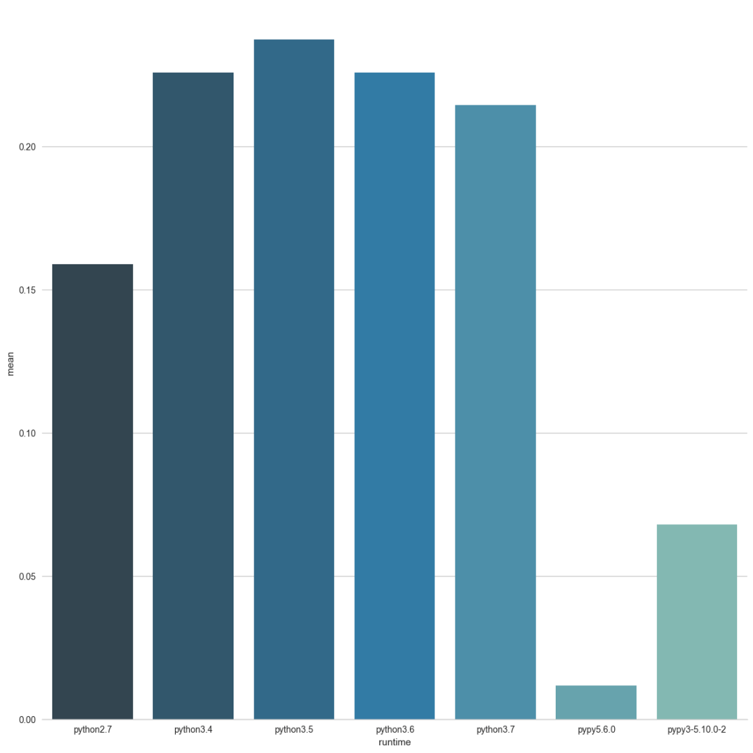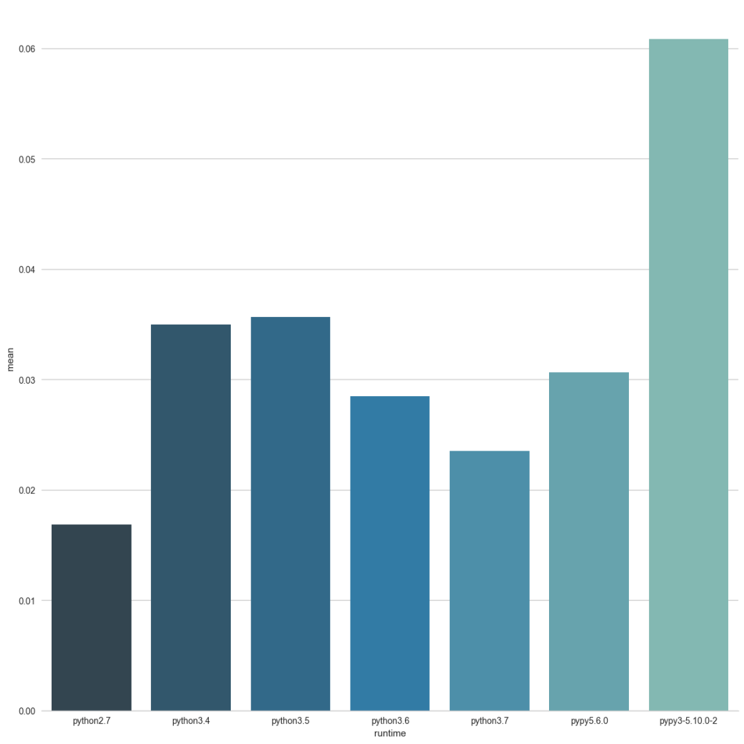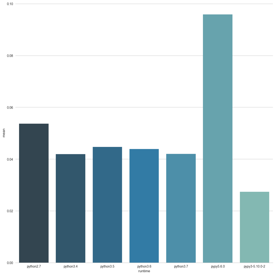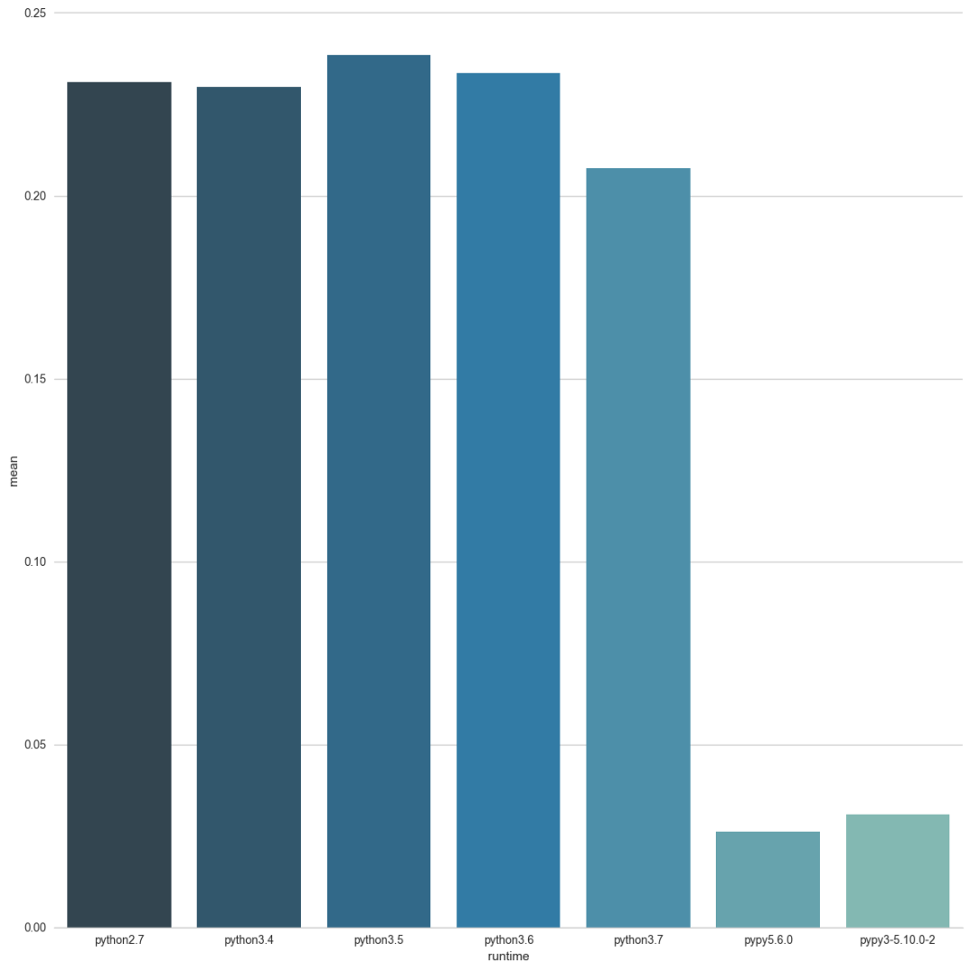 结果显示,在 CPython 系列中,Python 3.7 性能最佳。此外,PyPy 3 和 PyPy 测试结果比较接近,PyPy 小胜。