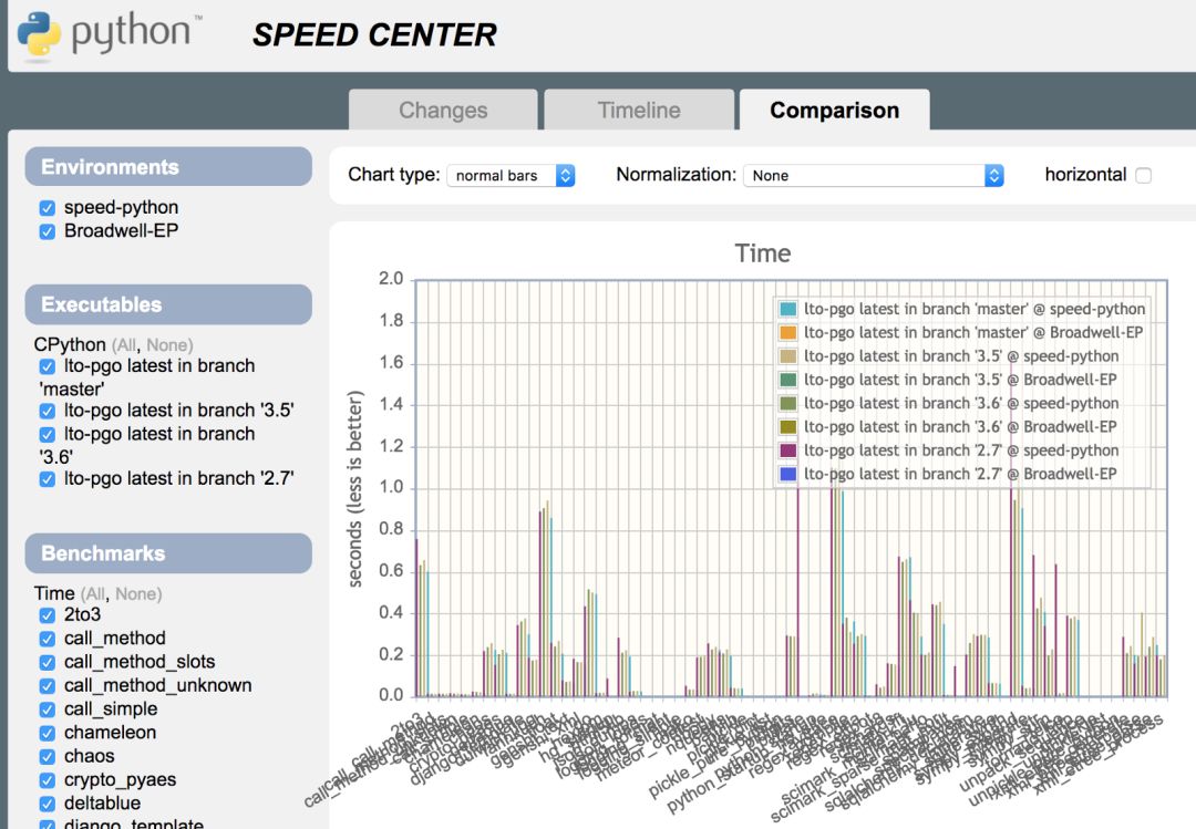 正如之前我在 speed.python.org 网站提到的,Python 核心开发团队非常重视性能问题,这对于比较官方基准和 CPython 版本非常有用。