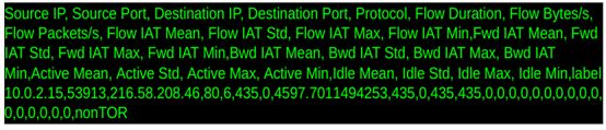 为了完成本文的数据实验,我们从纽布伦斯威克大学的Habibi Lashkari等人[11]那里获取了数据。他们的数据由从校园网络流量分析中提取的特征组成。从数据中提取的元信息如下表所示: