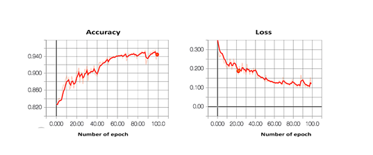 我们在后端使用带有TensorFlow的Keras来训练深度学习模块。使用二元交叉熵损失来优化FFN。模型会被训练不同次数。图7显示,在一轮仿真训练中,随着训练次数的增加,性能也在增加,损失值也在下降。