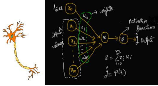 图1:我们能获得的最大灵感来自大自然——图中描绘了一个生物神经元和一个人工神经元