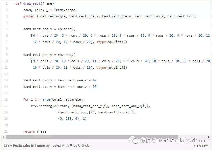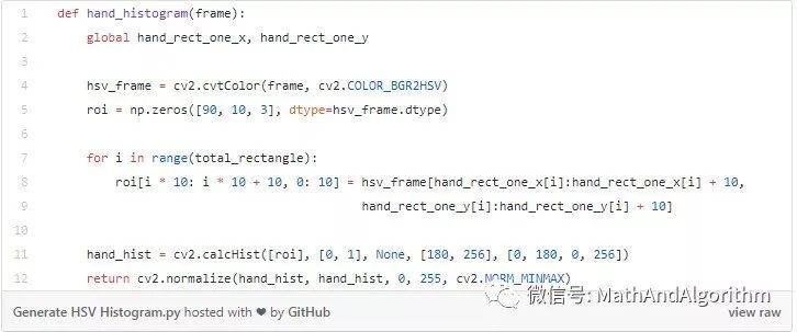 现在用户理解了在哪里放置他们的手掌,接下来成功的关键步骤是从这些长方形中提取像素,然后基于像素生成 HSV 直方图