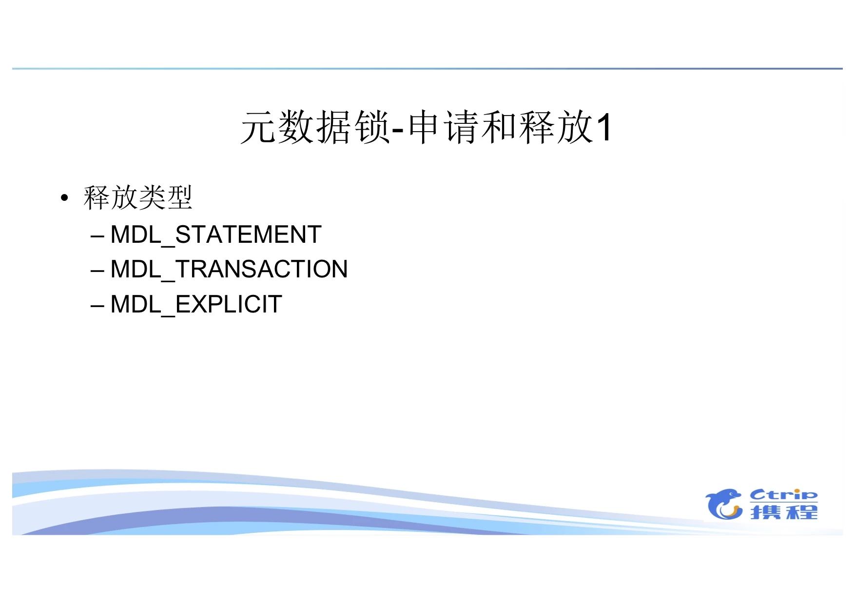 它在元数据上锁的时候,对元数据操作进行上锁,如果指定STATEMENT的时候,它在STATEMENT结束时候会进行判断,看到有这些上了STATEMENT锁的时候会在这时候进行释放。