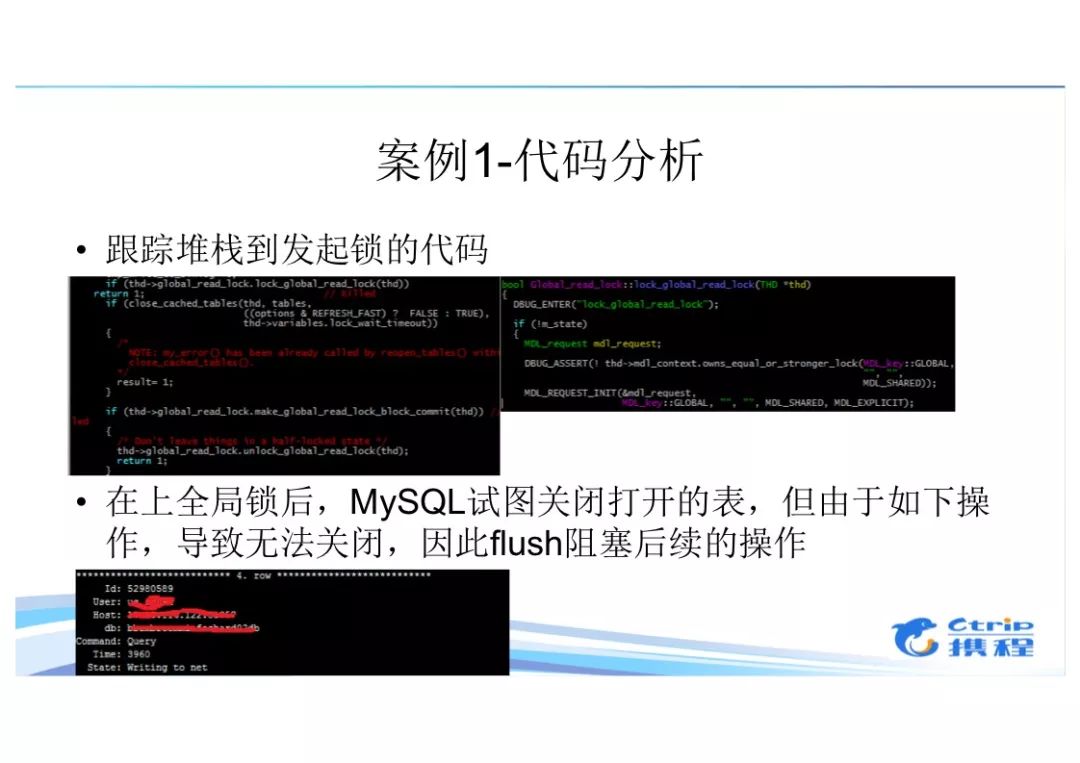 在这里面拿出来的这段,只有这一个,当时做一个维护操作,只有这个东西才会把整个全局进行锁掉,针对这个东西我们查为什么前面这个查询导致后面出现了全局的锁,当时分析的一些结果。