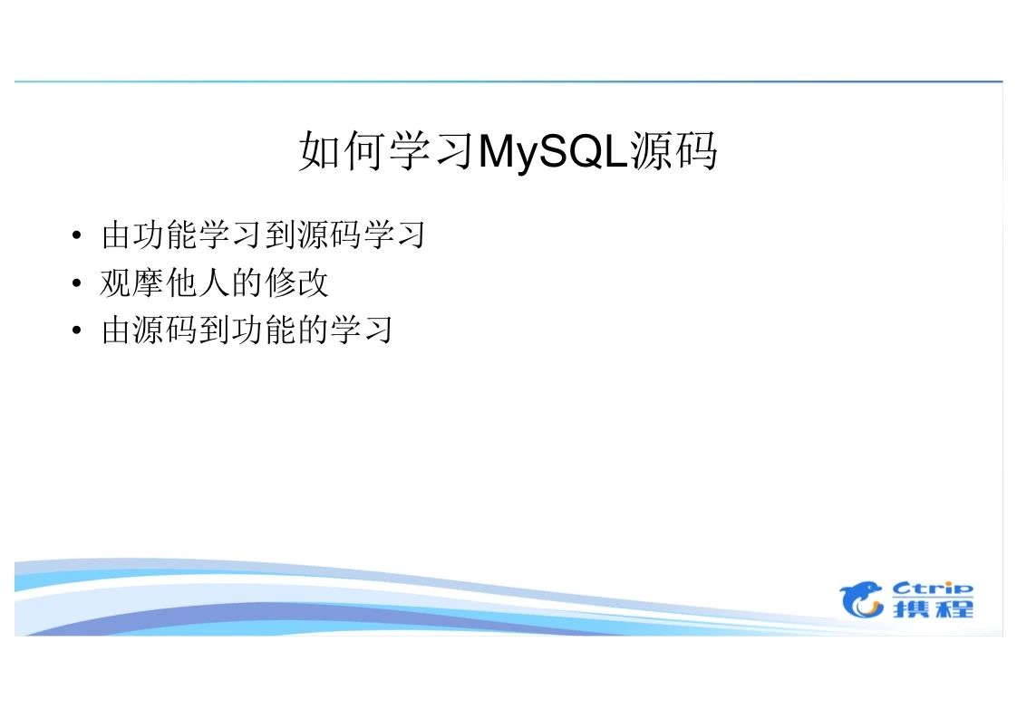 首先第一点,你一定要先了解数据库的绝大部分功能,然后再去研究它的源码,否则的话,你直接拿过来源码看通常是一头雾水。因为一个好的,像MySQL 源码写得很不错,很多函数名和变量的定义能直接跟它的功能关联。如果你不熟悉功能直接看源码时候,你通常找不到它的关联性。