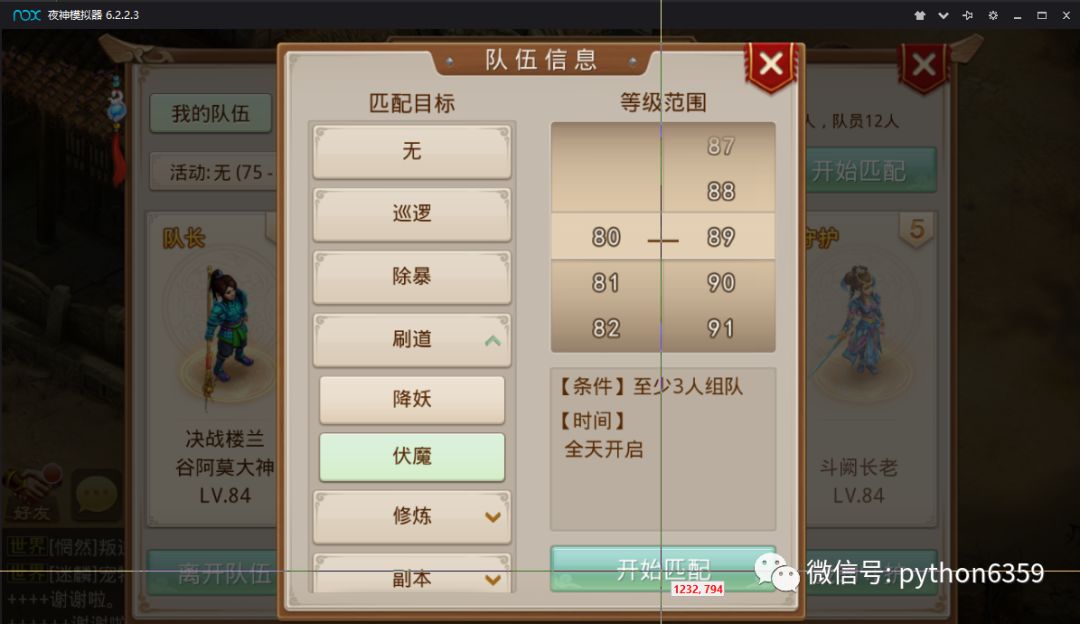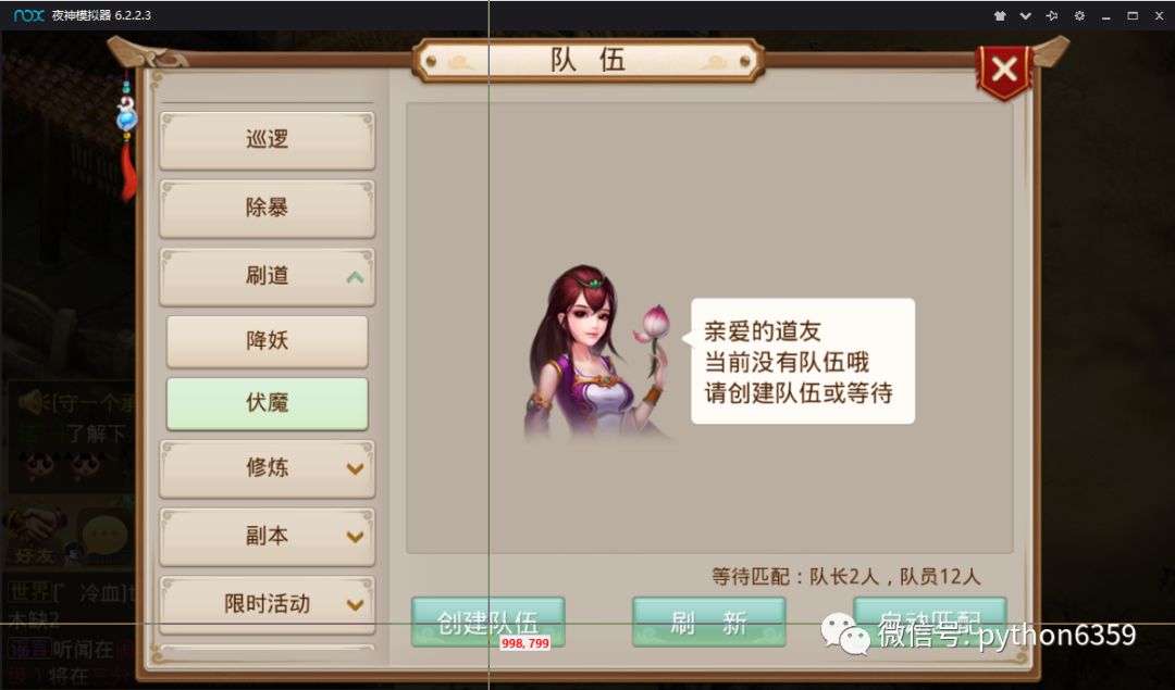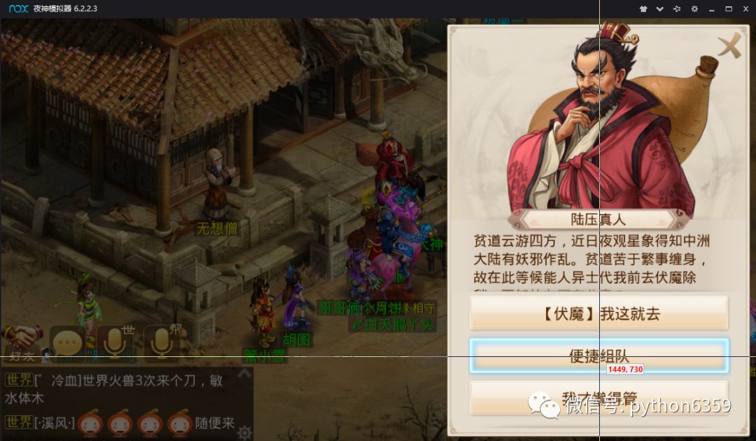 如果两位长老都不存在,说明队伍里已经有三人。此时关闭刷道窗口,点击陆压真人,对话,开始刷道