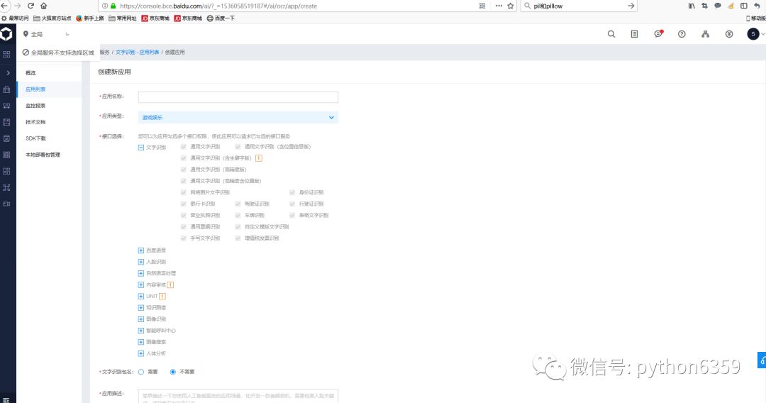 我们需要APPP_ID、API_KEY、SECRET_KEY,我们去百度云申请