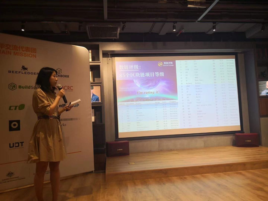 著名区块链评级机构数链评级也出席中澳区块链交流会。数链评级首席分析师林心怡介绍了数链评级团队构成,称目前已评项目85个,包括近期热门项目Hitchain,Botchain和Platon等,合作媒体20余家。当前数链评级在与币安交易所深度合作,测评币安上线的100个币种,并在币安官网上进行评级展示。