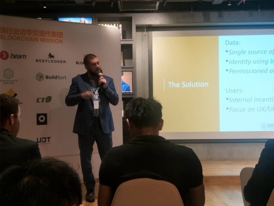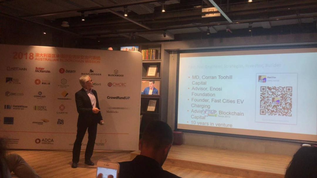 Giurietto等代表携澳方12位成长型企业代表,出席交流会并发表演讲。包括共享财经在内的等近40家区块链业界翘楚和媒体与会。