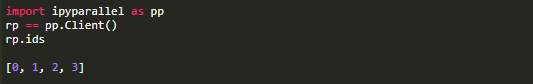 请注意%% px 这个magic命令。这个命令位于代码块顶部,将单元格中的计算复制到每个核心的单独进程中。由于我们使用四个核心启动了我们的集群,因此将有四个进程,每个进程都有自己的所有变量的私有版本,并且每个进程独立于其他变量运行。