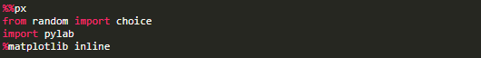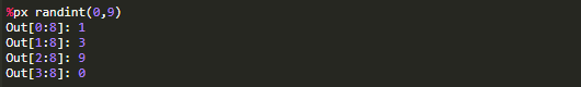 还可以使用%px在群集上执行“ one-liner ”命令,可以在代码块中混合串行和并行代码。如在导入随机整数函数(randint())之后: