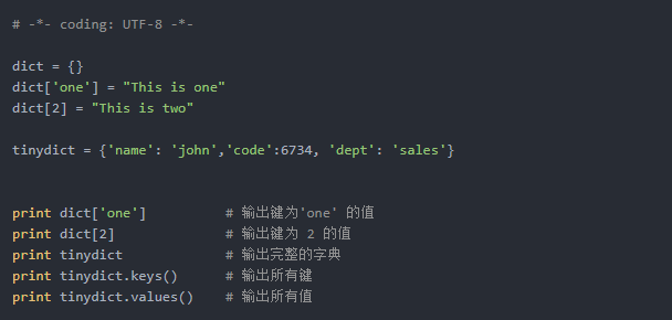 字典用"{ }"标识。字典由索引(key)和它对应的值value组成