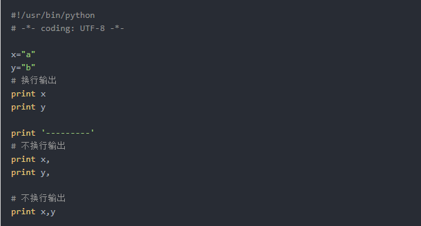 print 默认输出是换行的,如果要实现不换行需要在变量末尾加上逗号 ,