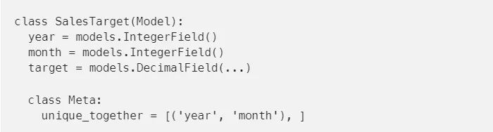 Django在很长一段时间内都支持唯一性约束,但是只有当你希望字段的组合在表中的所有行中都是唯一的时候才需要使用它: