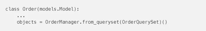 为了设置order(订单)模型的默认管理器,我们设置了objects属性: