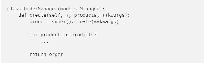 类似地,我们可以创建一个自定义管理器,例如使用一个帮助器方法来简化新订单的创建: