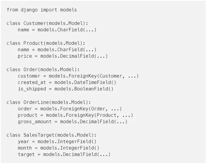 在本文中,我将在大多数例子中使用下面定义的模型: