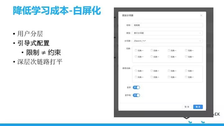 对于专家用户,基本就是 ES 所有的功能可视化,加快使用速度。对于小白用户而言,则是完全屏蔽这些功能点,让其可以直接使用。