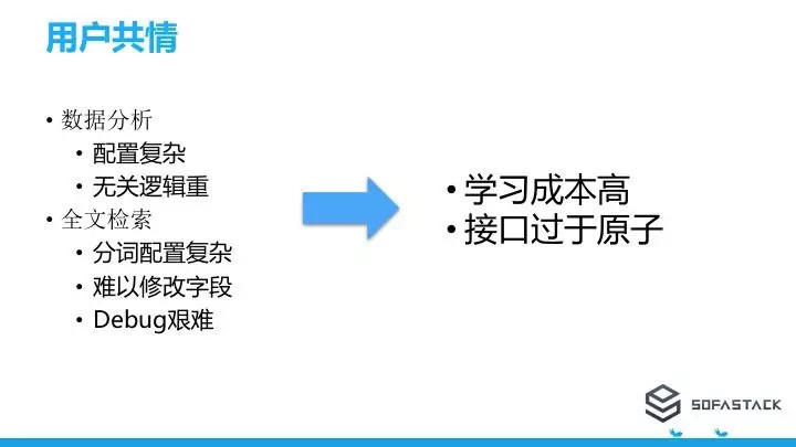 学习成本高和接口过于原子,虽然是业务的痛点,但是对ES本身而言却反而是优点,为什么学习成本高呢?因为功能丰富。而为什么接口原子呢?为了让上层可以灵活使用。