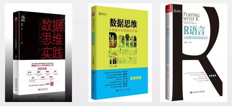 高校中的相关课程讲的都是模型层面,而在业务和产品层面讨论的书籍非常少。在这里插播一则广告,向大家推荐狗熊会团队出品的两本书,都是关于数据思维的。其中第一本书,《数据思维:从数据分析到商业价值》,是由我领衔主编的,主要是偏概念性的,以案例为主,没有数据和代码。而第二本书,是由水妈领衔创作的《数据思维实践》,对数据思维如何变成在课堂中可被实施的教学方案做了详细的阐述。有数据,有代码,非常详细,可以支撑一门两学分的课程。在模型层面,我向大家推荐由布丁带队写的《R语言:从数据思维到数据实践》,非常详细,丰富有趣。