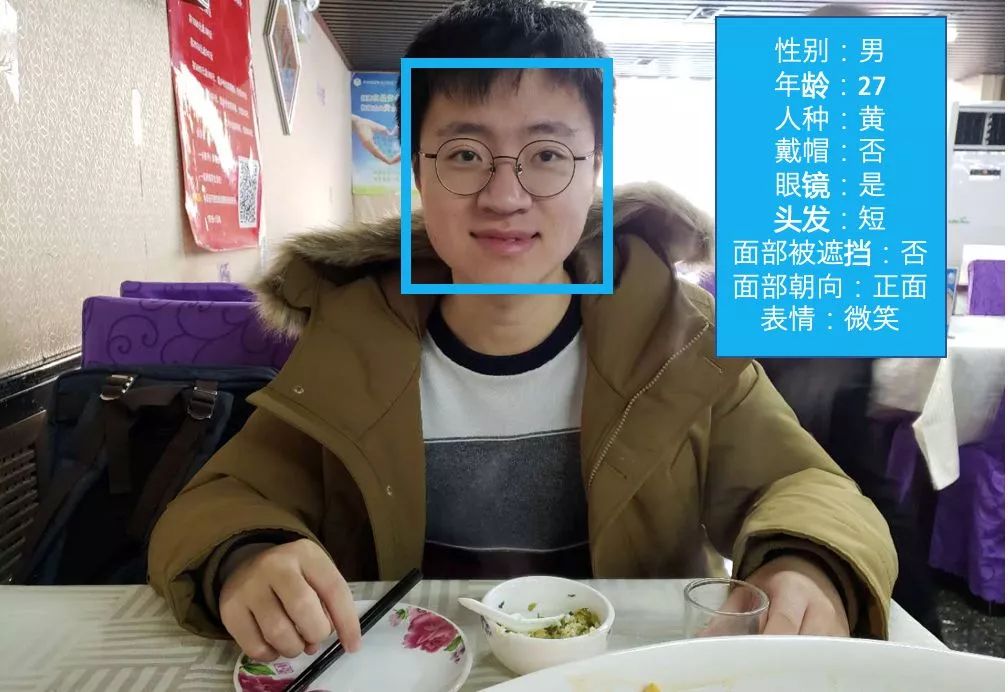 请看这个案例,这张照片是谁,是我们那位天天用加强学习打麻将的博士生。这张照片当中,大家能看到一个小方框框出他这张帅气的脸。用这张照片作为X变量,人们就学习出来,他的性别是男,年龄,人种,还知道他没有戴帽子,知道他带了眼镜,知道他头发不算很长。