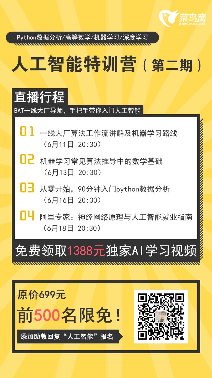 为了能让更多初学者了解机器学习/数据分析/数据挖掘等岗位的工作流程,找到入门的切入点,我特地邀请了两位人工智能不同领域的专家,一位BAT的数据挖掘工程师@熊猫酱,一位计算机视觉方向的专家@Angela,还有我阿里高级算法工程师@Chris,以自身具体的工作流为核心,举办连续四场人工智能入门分享会。