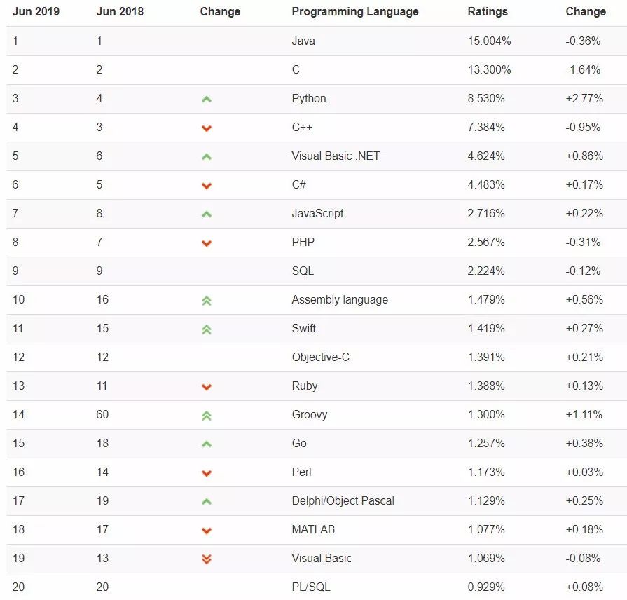 TIOBE 6 月编程语言排行榜 更新已发布,排名前三的依然是:Java, C, Python。