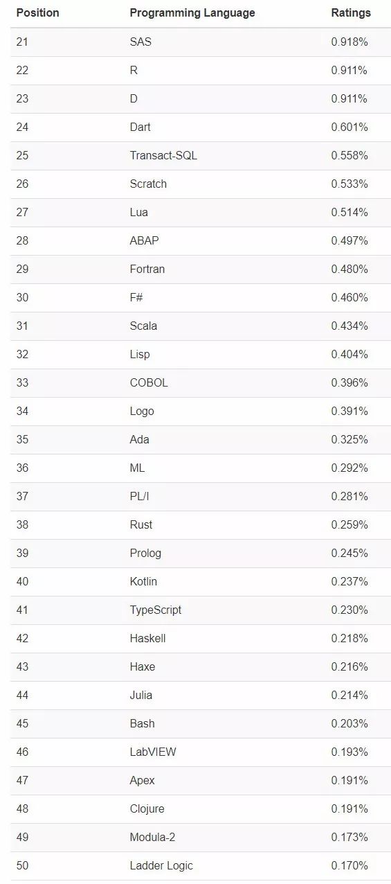 Python的高速发展主要原因是软件工程的蓬勃发展。它吸引了许多零基础的初学者。Java的编程方法对于初学者来说太冗长了。单单想要完全理解和运行在Java中的“hello world”这样的简单程序,你就需要去了解类、静态方法和包。在C语言中,这要简单一些,但是在内存管理上还是会出现一些问题。在Python这里,这就只是一行代码的事。
